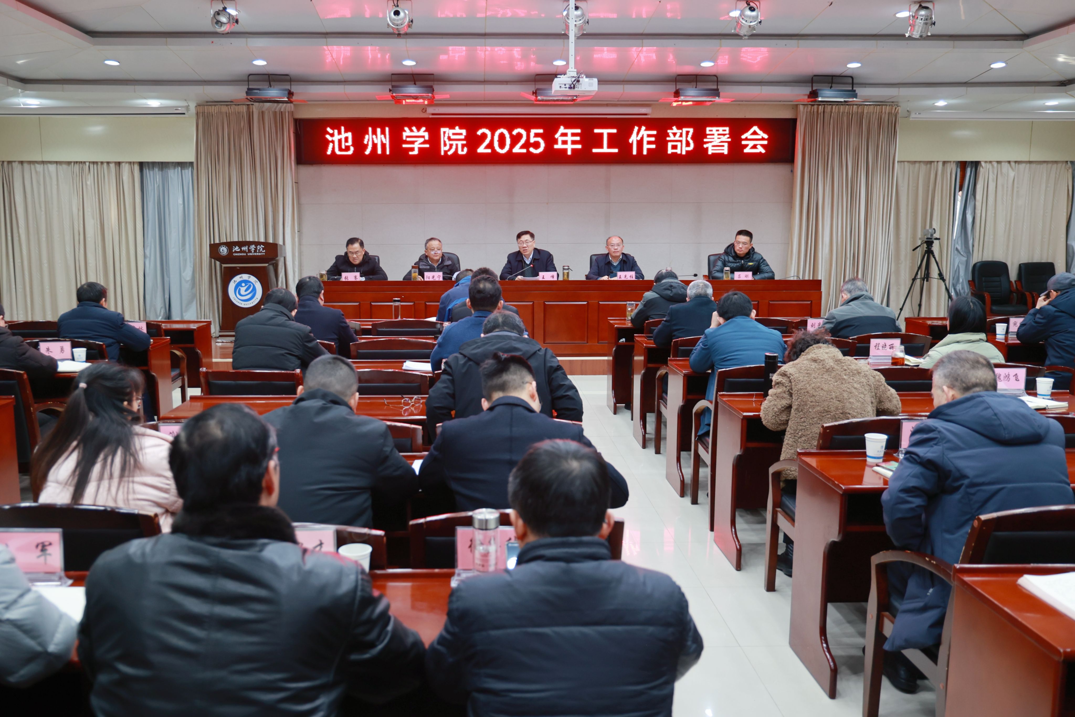2月25日,学校在办公楼南二楼会议室召开2025年工作部署会,深入学习贯彻习近平新时代中国特色社会主义思想,聚焦学校事业高质量发展目标任务,吹响决战决胜“申硕迎评”攻坚战的冲锋号,动员全校党员干部职工坚定信心、真抓实干、创先争优,奋力开创事业发展新局面。党委书记王峰出席会议并讲话,党委副书记、院长王先柱作工作部署,党委委员、副院长阳光宁主持会议,党委委员、副院长吕刚、张赛出席会议。