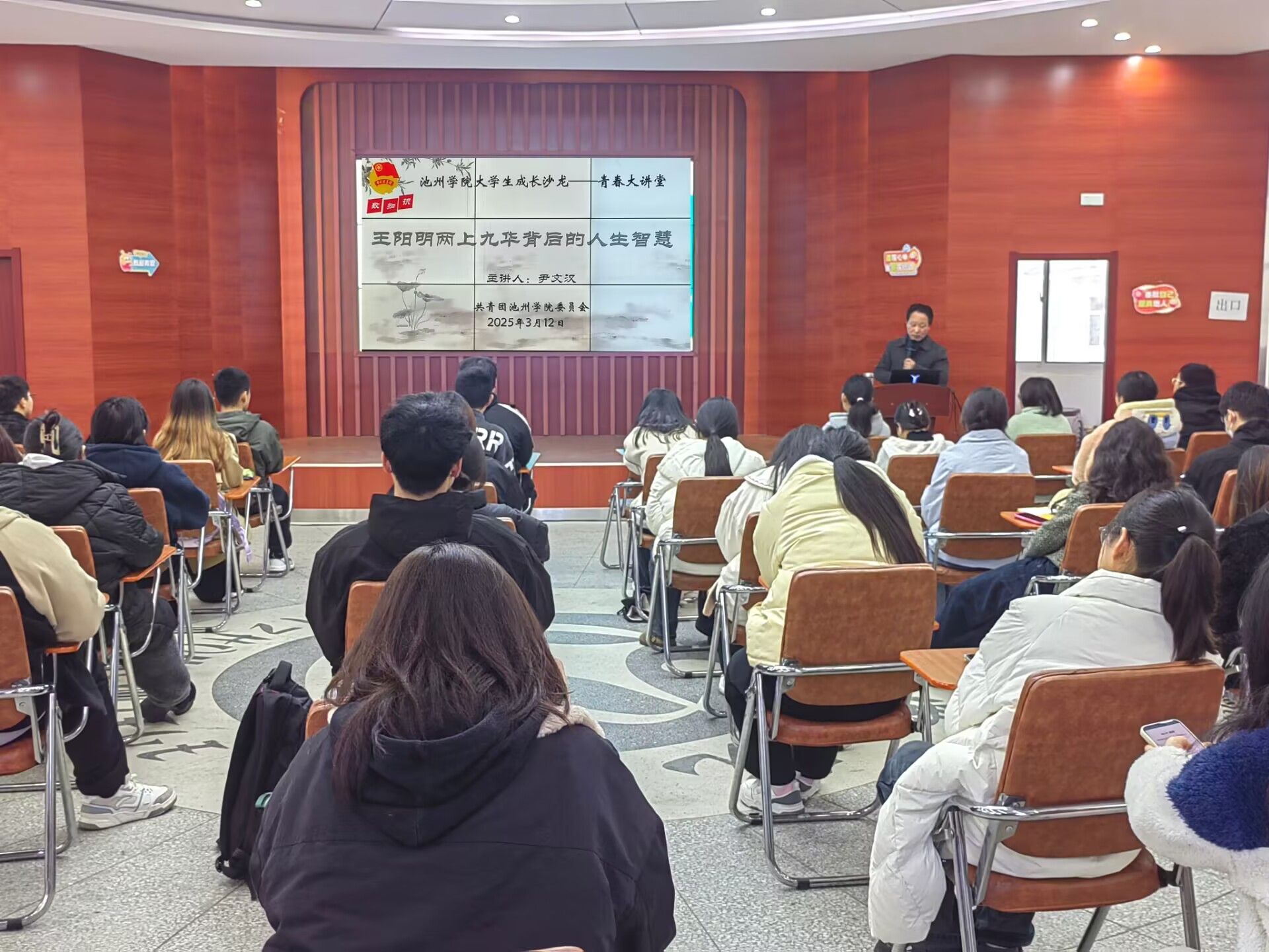 为传承中华优秀传统文化,引导当代大学生塑造积极的世界观、人生观和价值观,3月12日,best365手机版官方网站大学生成长沙龙“青春大讲堂”2025年第二期(总第七十三期)“致知识”在大学生活动中心开展。本期青春大讲堂以“王阳明两上九华背后的人生智慧”为主题,邀请best365官网九华山文化研究中心主任、马克思主义学院教授尹文汉作为嘉宾,向各院学生代表讲述王阳明两次游历九华山的历史事迹,引领青年学子从中领悟王阳明不畏艰险探求真理的精神及其人生智慧。