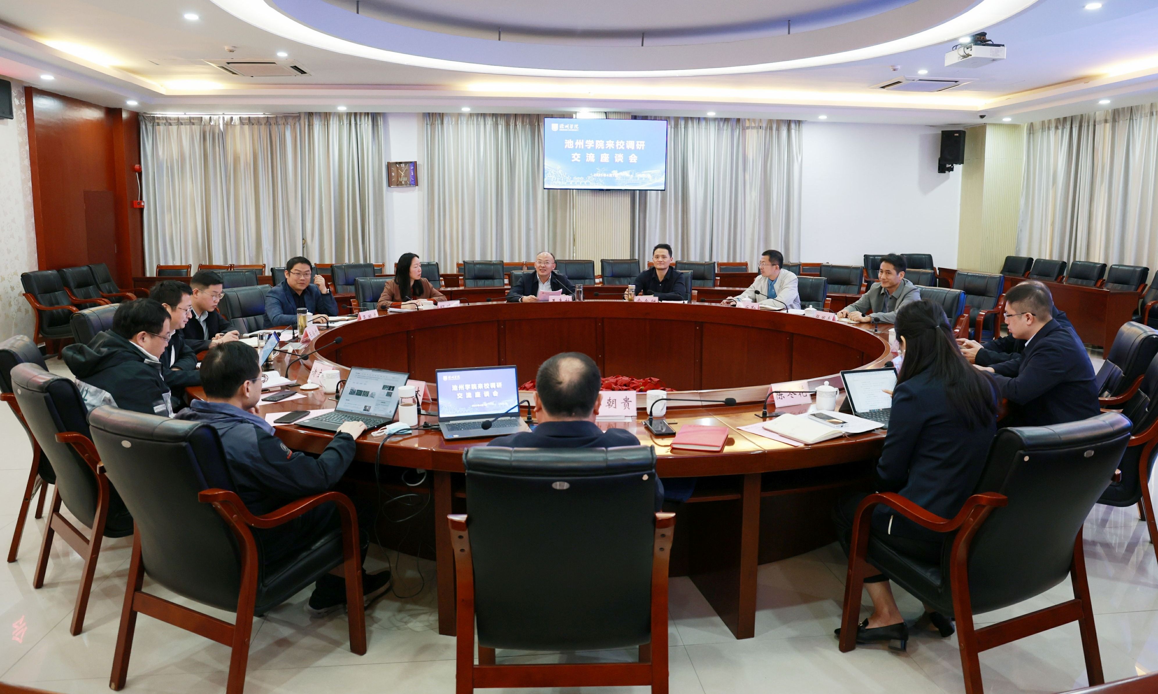 办公室、科研处、旅游与历史文化学院、地理与规划学院、机电工程学院、材料与环境工程学院等单位负责同志陪同参加调研交流。