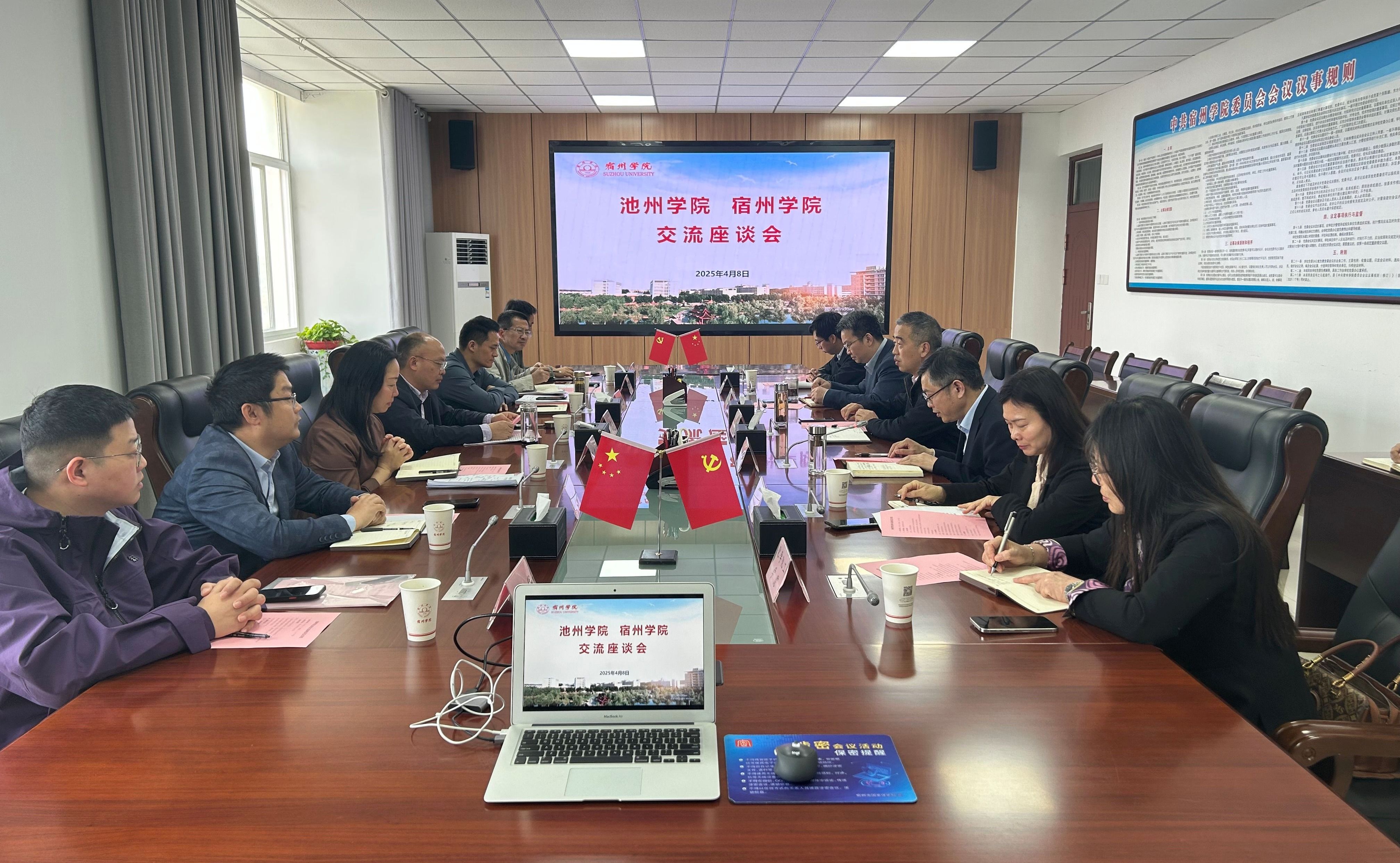 4月7日至8日,党委副书记、院长王先柱一行到滁州学院、宿州学院调研交流,分别与滁州学院党委副书记、院长郑朝贵和宿州学院党委副书记、院长闵杰等开展座谈交流,实地参观了滁州学院安徽省实景地理环境重点实验室、安徽省智能感知与健康养老工程研究中心和宿州学院皖北文化艺术馆、皖北安全教育馆。