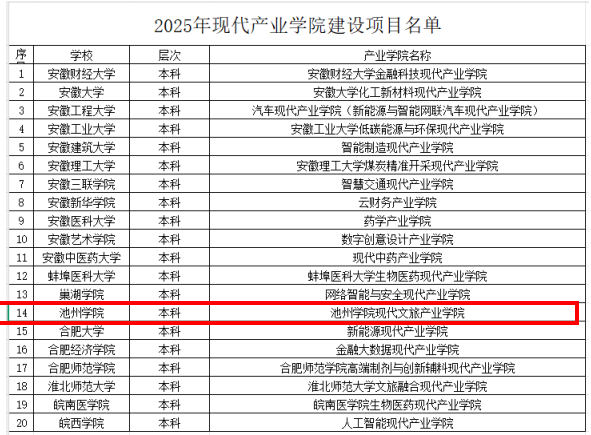 近日,安徽省教育厅完成2025年“双特色”建设项目评审工作,best365官网“现代文旅产业学院”入选安徽省“双特色”建设项目中的现代产业学院建设项目。