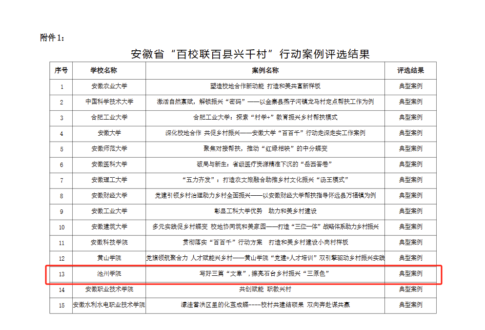 近日,安徽省乡村建设高校联盟公布了安徽省“百校联百县兴千村”行动案例评选结果,best365官网申报的《写好三篇“文章”,擦亮石台乡村振兴“三原色”》成功入选典型案例。