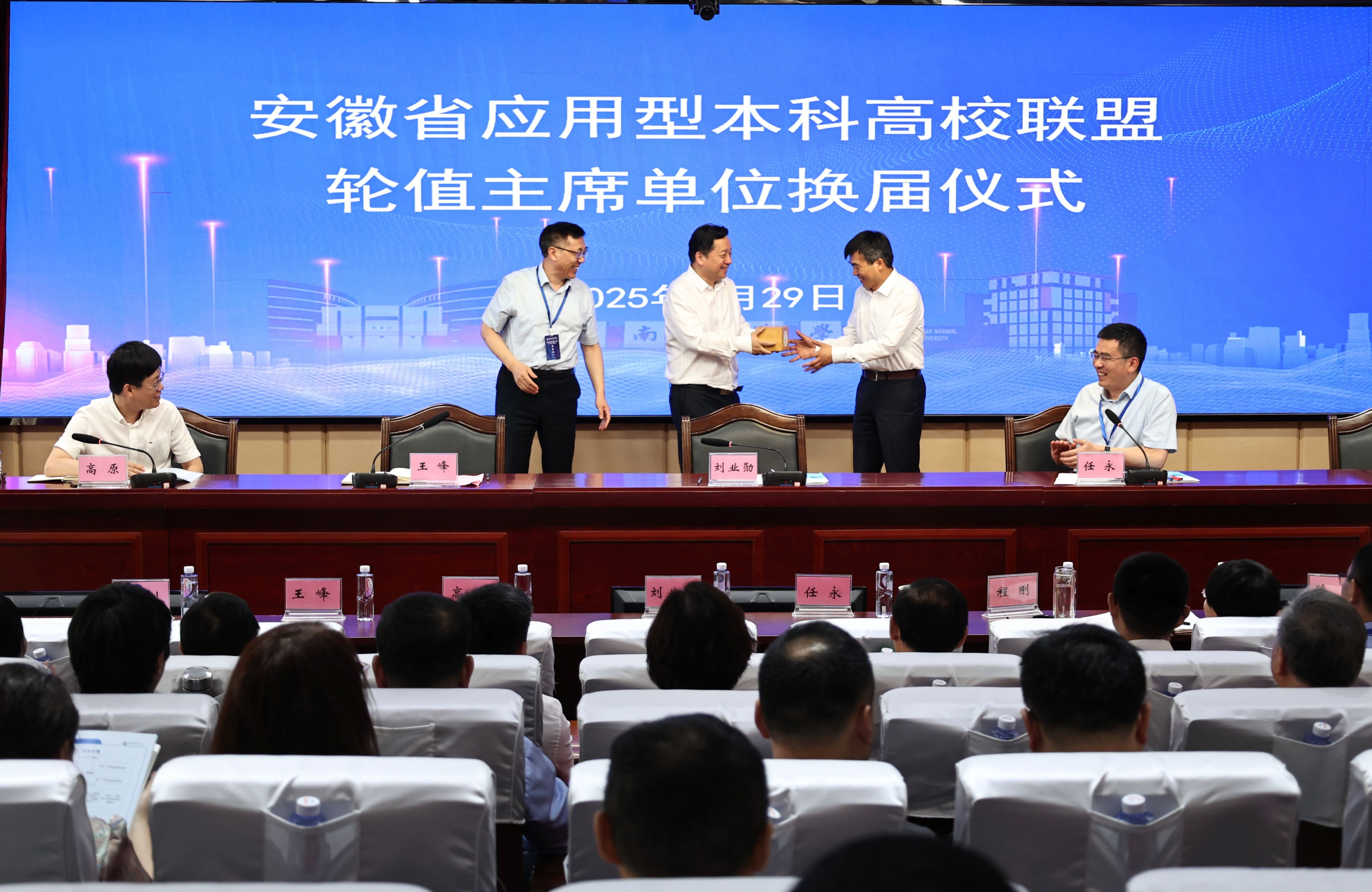 王峰代表学校做轮值主席单位工作发言。他指出,两年来,学校全面贯彻落实习近平总书记关于教育的重要论述和考察安徽重要讲话精神,锚定打造“三地一区”战略定位,聚焦现代化美好安徽建设,围绕重点工作,切实履行轮值主席职责,取得了一定成绩。学校在持续优化学科专业结构,增强与主导产业的契合度;持续推进产教深度融合,加快现代产业学院建设;大力开展微专业建设,助力应用型人才培养;积极开展“双特色”项目申报与建设;完善联盟协同发展工作机制等方面取得积极成效,应用型办学特色不断显现,人才培养质量明显提升。