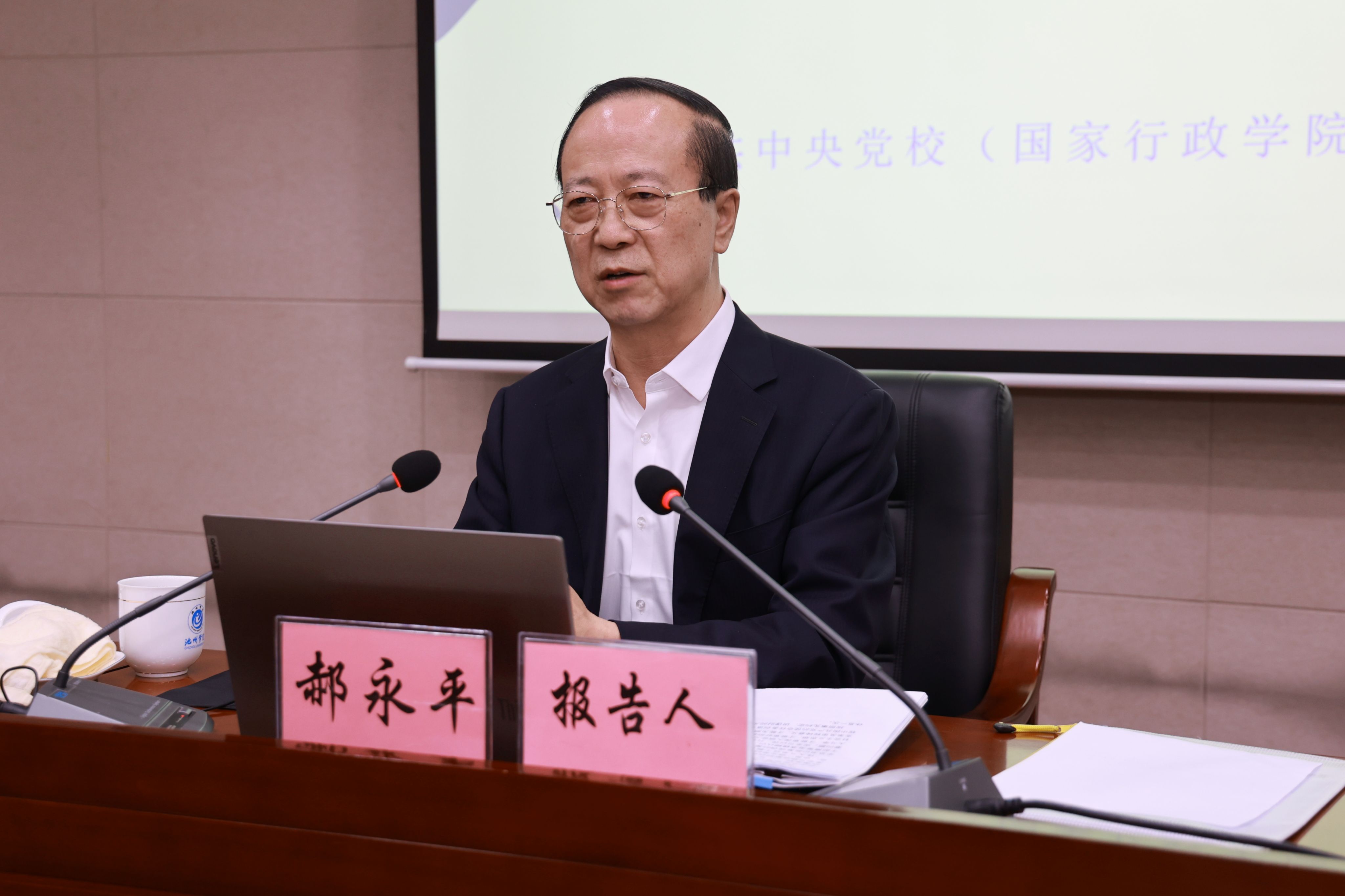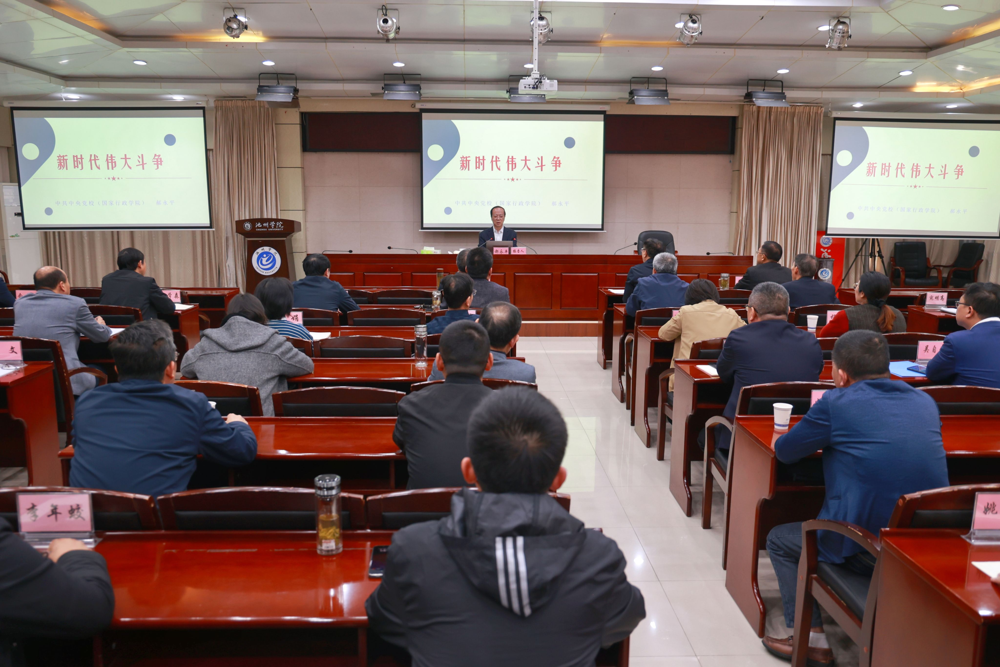 11月8日下午,校党委召开理论学习中心组(扩大)2024年第十一次集中学习会,专题学习习近平总书记关于新时代伟大斗争的重要论述。中央党校(国家行政学院)原副秘书长、博士生导师郝永平教授应邀作题为《新时代伟大斗争》的辅导报告。校党委书记王峰主持并讲话。
