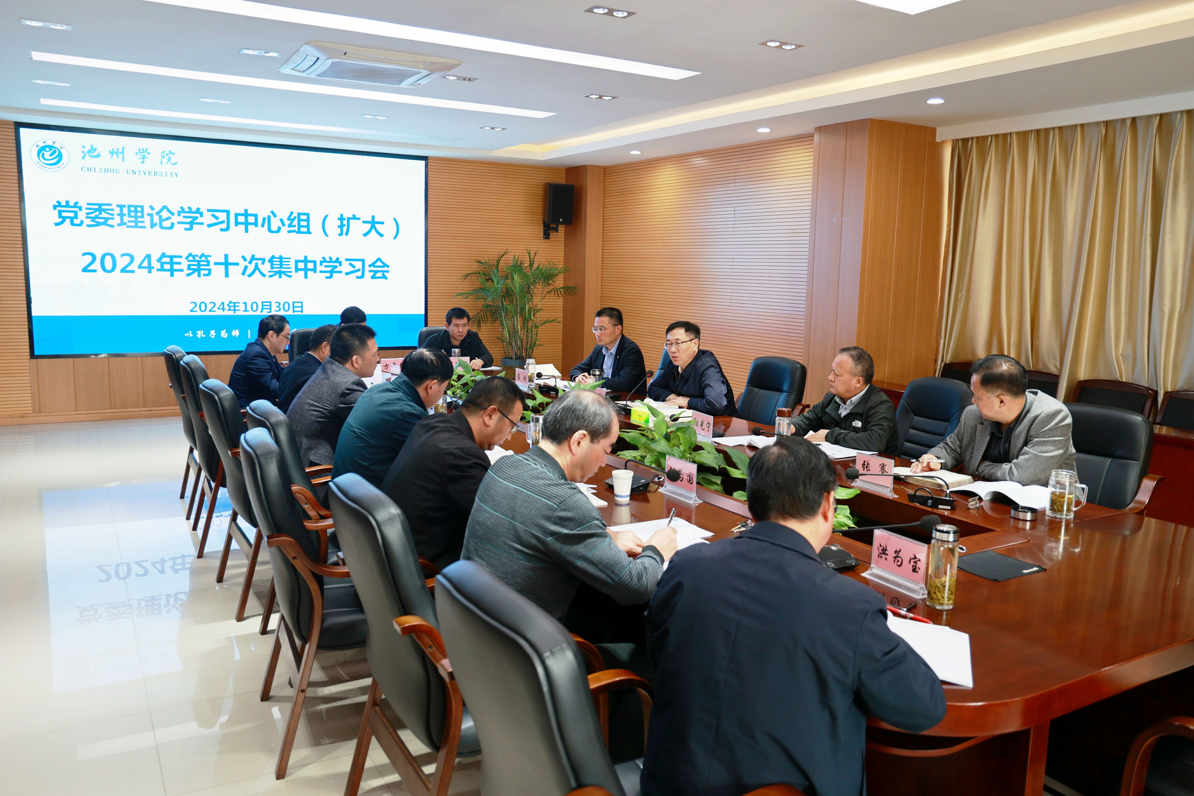 10月30日上午,校党委召开理论学习中心组(扩大)2024年第十次集中学习会,专题学习习近平总书记考察安徽重要讲话精神,安排部署学习宣传贯彻工作。校党委书记王峰主持学习会并作中心发言。校党委委员、副校长阳光宁、吕刚、张赛作重点发言。
