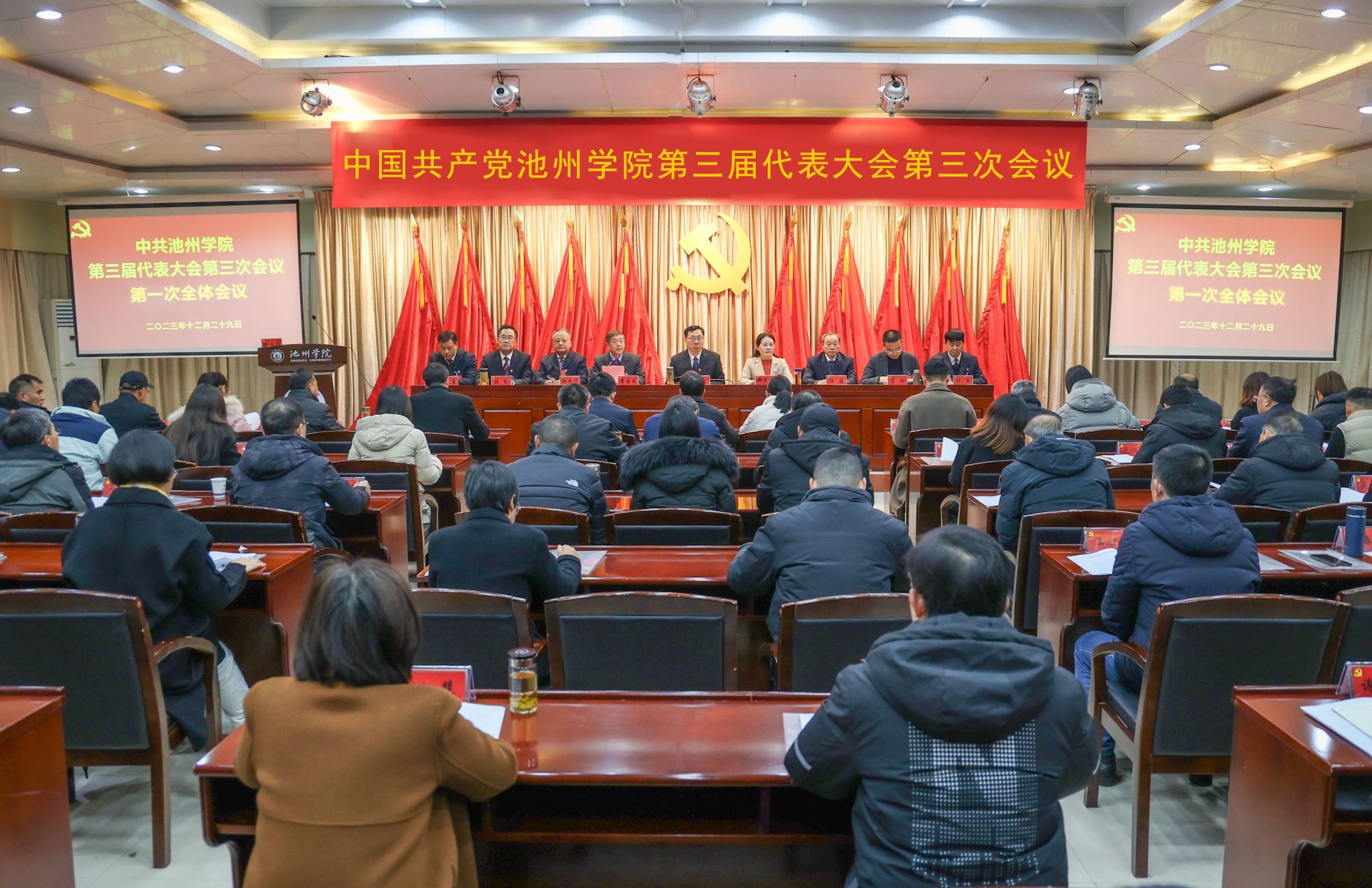 12月29日,中共best365手机版官方网站第三届代表大会第三次会议在办公南二楼会议室胜利召开。大会由校党委书记王峰主持。校党委班子成员郑兰荣、崔国发、汪海、阳光宁、吕刚、张赛、胡兵、汤文益在主席台就坐。85名正式代表出席会议。