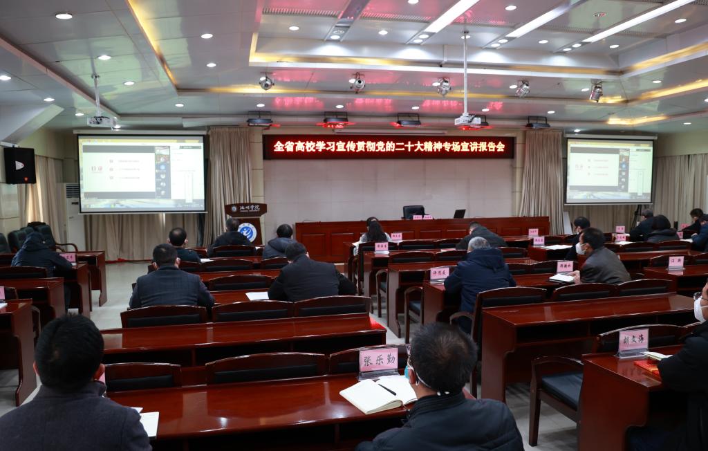 孙晓峰在主持报告会时指出,报告脉络清晰、内容丰富,深入浅出、生动朴实,亲切感人、充满激情,有典型事例、有具体数据,既有思想高度,也有理论深度,具有很强的思想性、理论性和现实针对性,对大家深入学习好、领会好和贯彻好二十大精神具有很好的启发、辅导和指导的作用。希望大家按照中央和省委及省委教育工委的部署和要求,坚持学深悟透,坚持讲好讲活,坚持见行见效,把学习宣传贯彻二十大精神工作不断引向深入,着力推动学校高质量发展。
