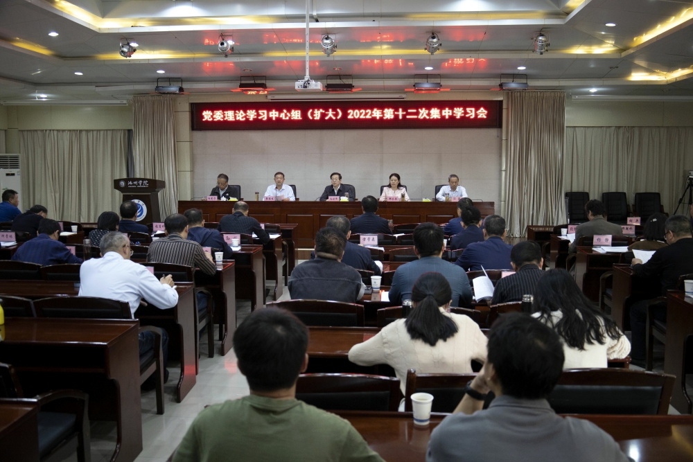 11月11日下午,校党委理论学习中心组(扩大)2022年第十二次集中学习会召开。校党委书记孙晓峰主持学习会并作了党的二十大精神专题宣讲报告。校领导郑兰荣、崔国发、汪海、阳光宁参加学习会。