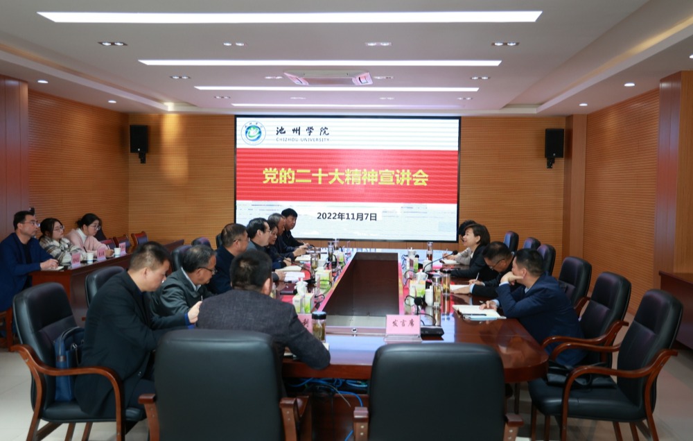 院党委书记孙晓峰主持会议并讲话。他强调,学习宣传贯彻党的二十大精神是当前和今后一个时期学校的首要政治任务。一要切实抓好大学习、大宣传、大贯彻,真正在三个全面上下功夫。二要对标对表,切实落实党的二十大精神,推动党的二十大精神在学校深入人心、落地生根。三要发挥高校优势,立足服务地方,为美好安徽、“三优池州”建设贡献力量。