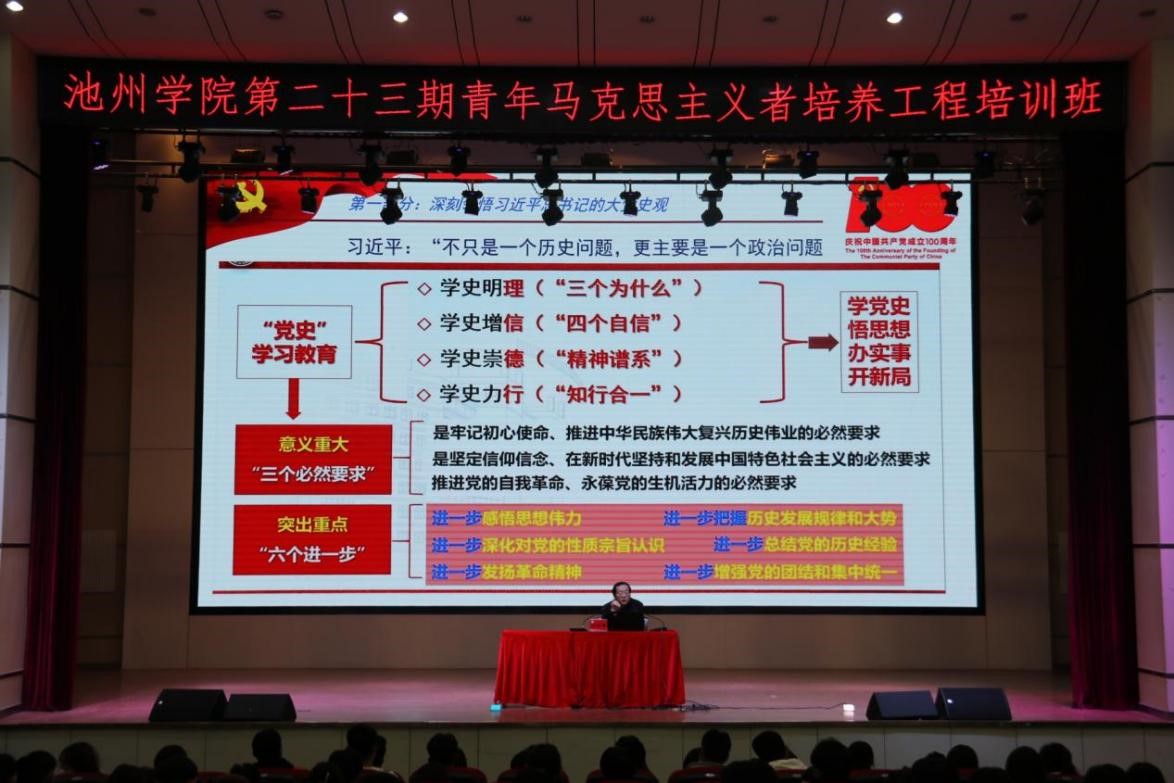 为深入学习贯彻习近平新时代中国特色社会主义思想、习近平总书记“”七一”重要讲话精神和党的十九届六中全会精神,认真贯彻落实习近平总书记关于青年工作的重要思想,加强对青年大学生的思想政治引领,着力为党培养和输送青年政治骨干,11月24日,校党委书记孙晓峰为best365官网第二十三期青年马克思主义者培养工程培训班作党史专题报告,best365官网专职团干部和青马班全体学员聆听了报告会。