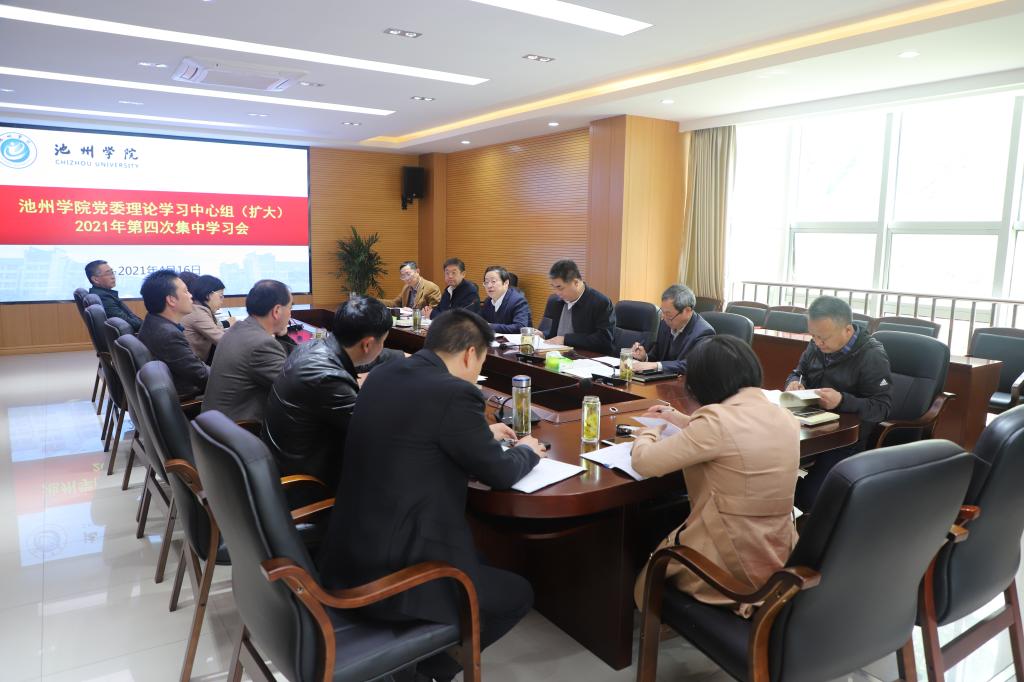 4月16日上午,校党委理论学习中心组2021年第四次集中学习会在办公北二楼召开。校党委书记孙晓峰主持会议并讲话,校长柳友荣、党委副书记崔国发、纪委书记汪海、副校长阳光宁、汪贤才出席会议。