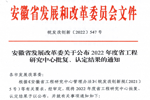 近日,安徽省发展和改革委员会下发了《安徽省发展改革委关于公布2022年省工程研究中心批复、认定结果的通知》,best365官网牵头申报的“安徽省高活性微纳粉体工程研究中心”喜获立项建设。