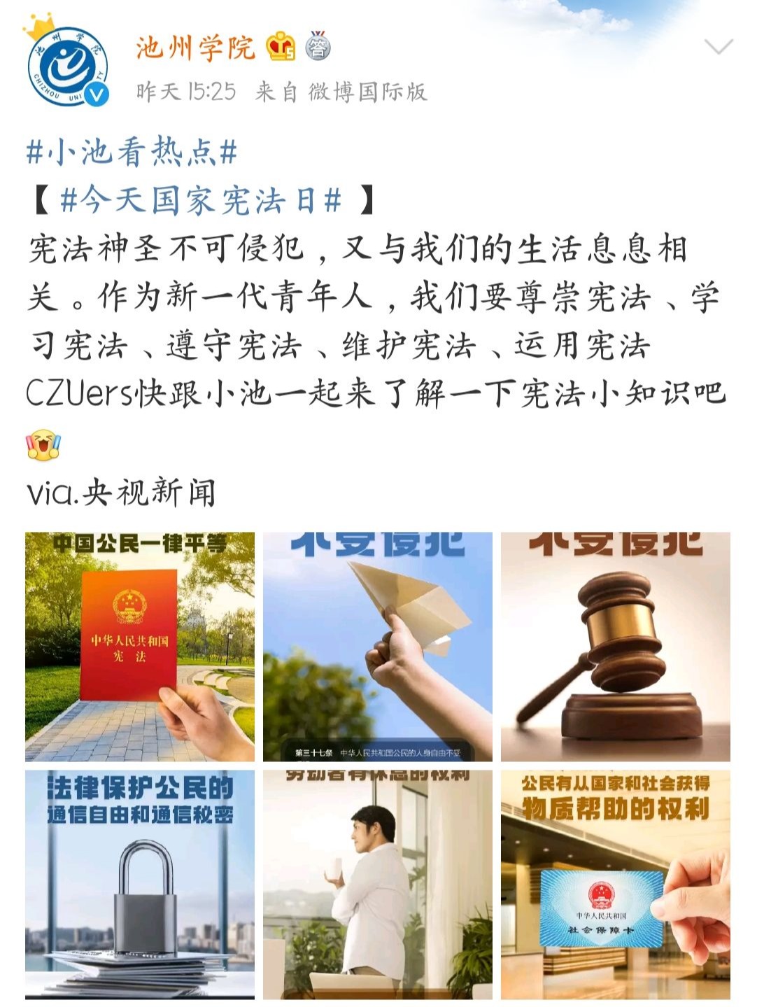 创新宣传形式,强化宣传力度。学校在校园网开设“宪法宣传周”专栏,进行国家法律知识宣传;通过微信公众号、微博、校园广播等媒体平台推送宪法宣传周相关活动咨询和宣传材料,丰富宣传形式和宣传载体;同时,学校在各楼宇电子屏上滚动播放宪法宣传周活动标语,进一步扩宽宣传渠道,营造了人人学法、懂法、守法、尊法的良好氛围。