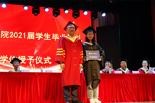 校党委书记孙晓峰代表全校师生员工,向2021届毕业生顺利毕业送上深情的祝福,并提出殷切希望。他指出,全体毕业生要胸怀国家,做一个有“热度”的人;拒绝“躺平”,做一个有“力度”的人;常怀感恩,做一个有“温度”的人;锤炼品德,做一个有“高度”的人。要立大志、明大德、成大才、担大任,用最勇敢的姿态,去开启未来无限可能,努力成为堪当民族复兴重任的时代新人。