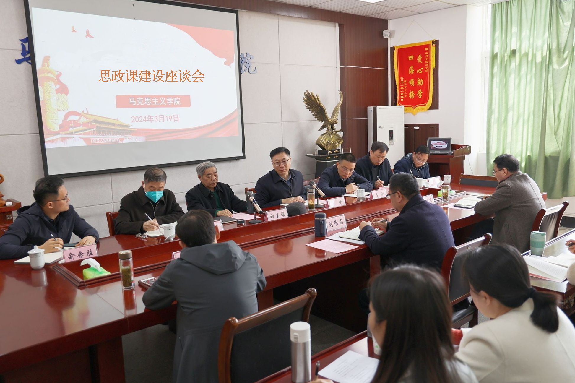 党委宣传部、科研处、教务处相关负责人,马克思主义学院党委班子成员及思政课教师代表参加会议。