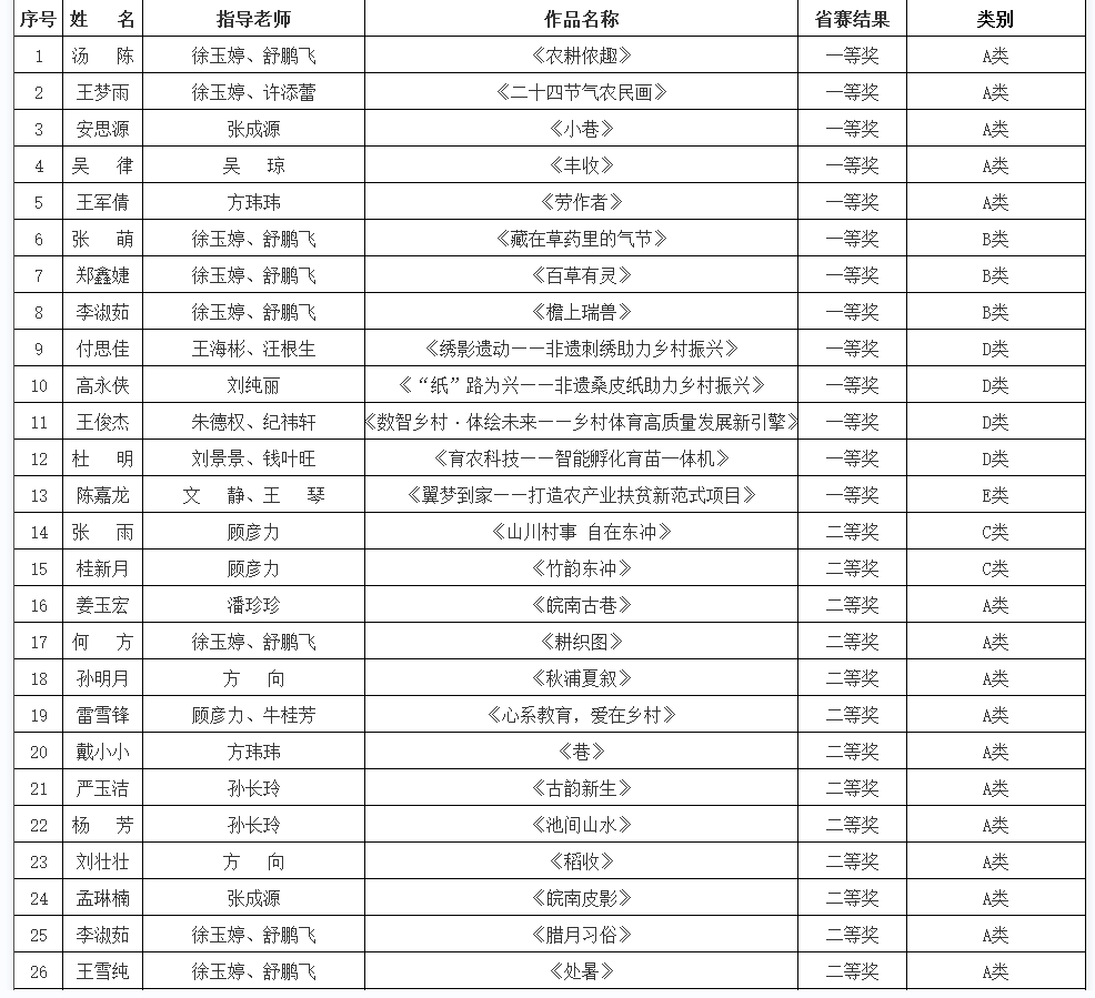 近日,第二届安徽省乡村振兴创新创业大赛成绩公布,学校成绩喜人,获奖总数达108项,其中一等奖13项、二等奖34项、三等奖44项、优秀奖17项。