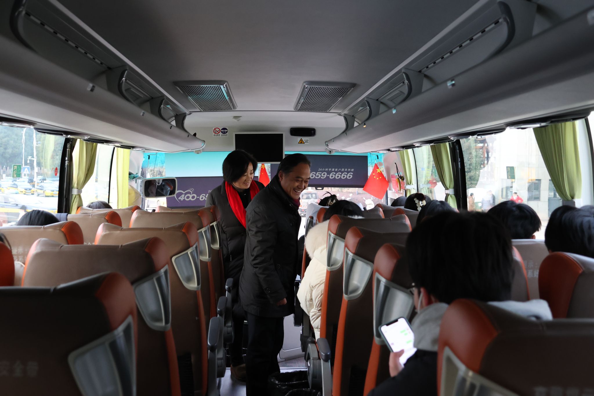 12月23日早上7点,学生工作处负责人和各二级学院毕业班辅导员共同送考,在学校南大门前为考研学子提供上车引导,给同学们送上爱心祝福,鼓励同学们稳住心态,全力以赴。怀着满腔热忱,考生在老师们的引导下有序上车,车外虽有寒意,车内暖意正浓。
