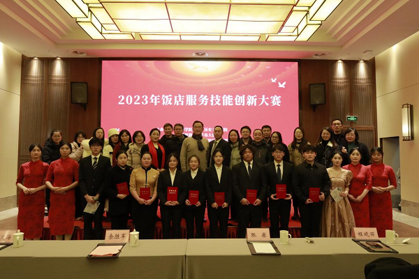 12月20日,由best365官网和九华旅游平天半岛大酒店联合举办的2023年饭店服务技能创新大赛圆满落幕。党委委员、副院长张赛,平天半岛大酒店副总经理余胜军现场指导。