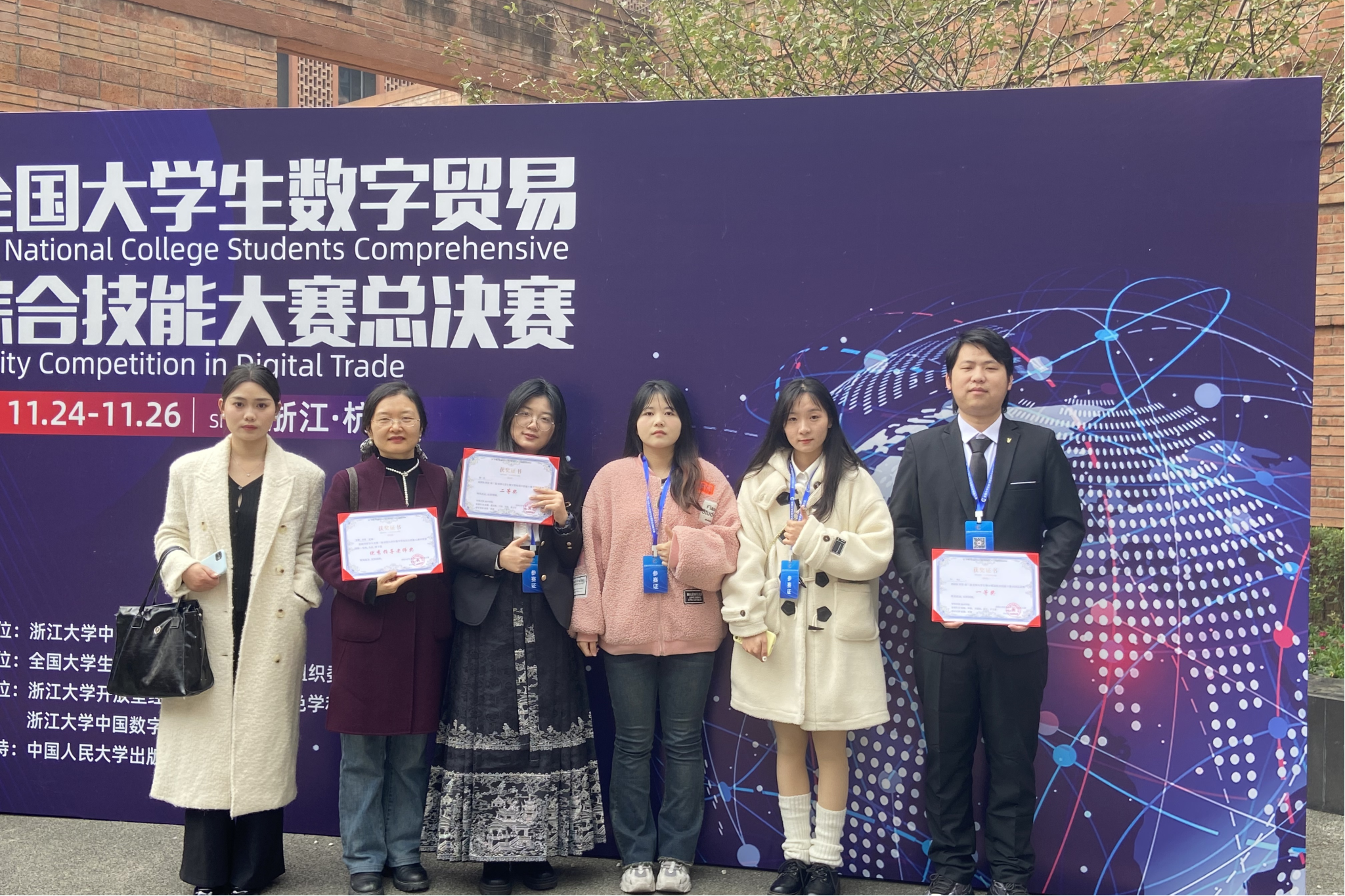 11月25日至26日,第二届全国大学生数字贸易综合技能大赛总决赛在浙江大学举行。best365官网学生代表队分别斩获数字贸易创新创业计划书赛道的一等奖和二等奖。
