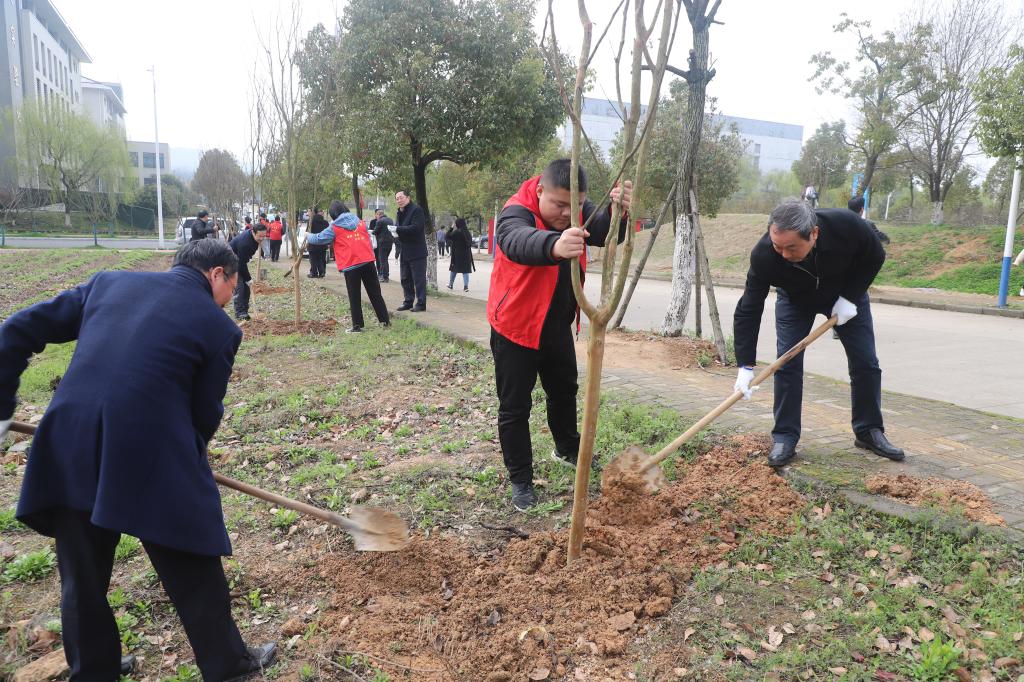 3月12日上午,为进一步践行习近平总书记倡导的生态文明理念,推进绿色校园建设及大学生劳动素养教育,校领导孙晓峰、柳友荣、崔国发、王延寿、汪海、汪贤才前往逸夫北路参加春季义务植树活动,用实际行动为绿色校园建设增绿添彩。