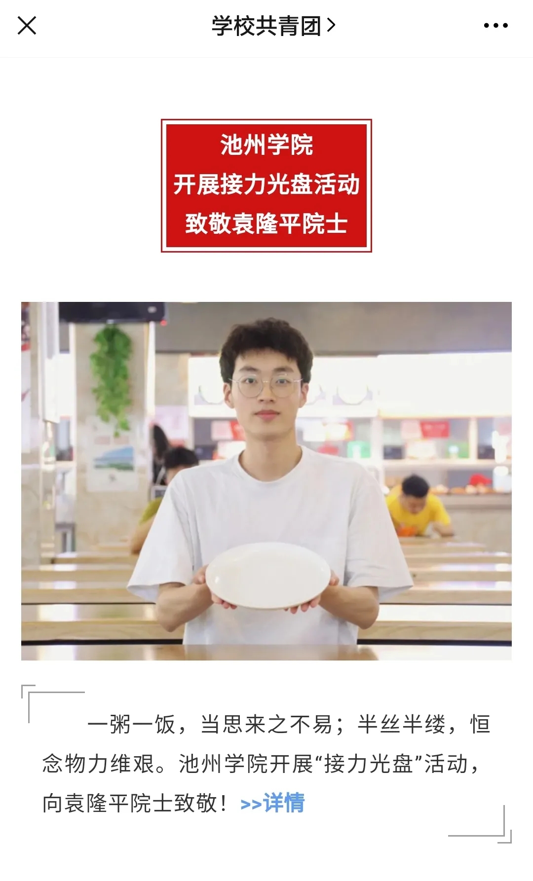 5月24日,池州日报微信公众号转载报道了best365官网“光盘行动”的倡议活动。同时,池州市广播电视台对best365官网师生积极践行“光盘行动”进行了采访,并将在近日播出。
