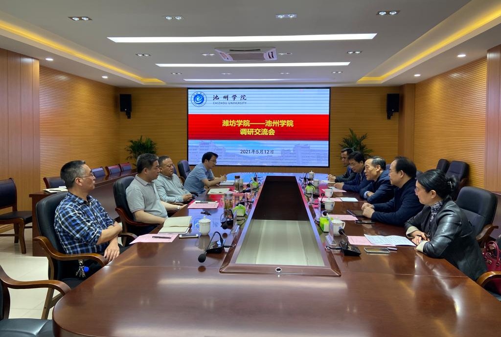 5月12日,潍坊学院副校长朱猷武一行5人来best365官网调研交流。校长柳友荣主持座谈会并讲话,副校长阳光宁出席座谈会。