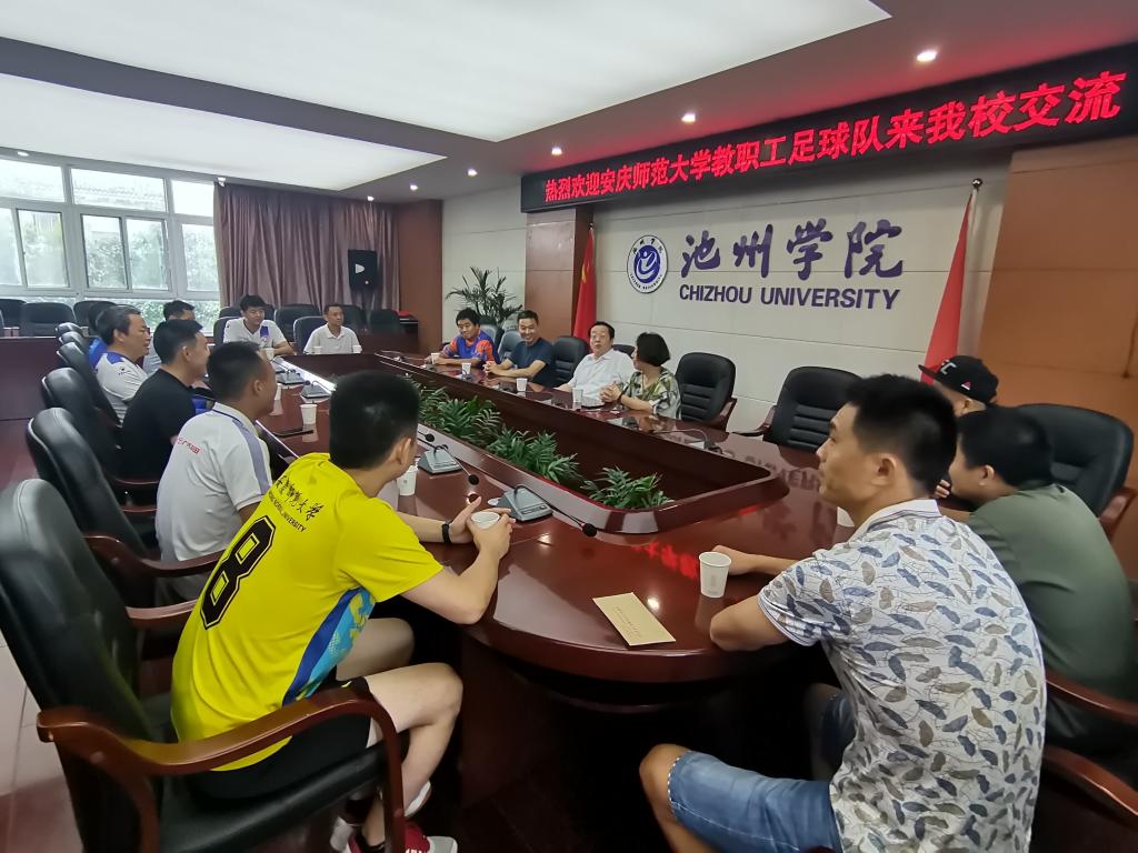 7月9日,安庆师范大学教职工足球队来best365官网交流,并与best365官网教职工足球队进行了一场友谊赛。校党委书记孙晓峰参加了座谈会,并就教职工体育文化的发展与校际间交流进行了座谈。