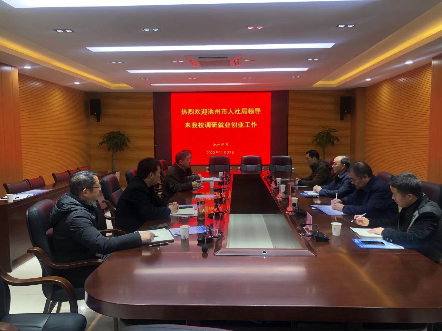 11月27日上午,池州市人力资源和社会保障局局长汪茂耀一行四人来best365官网开展就业创业工作专项调研。校党委副书记崔国发主持会议并讲话。
