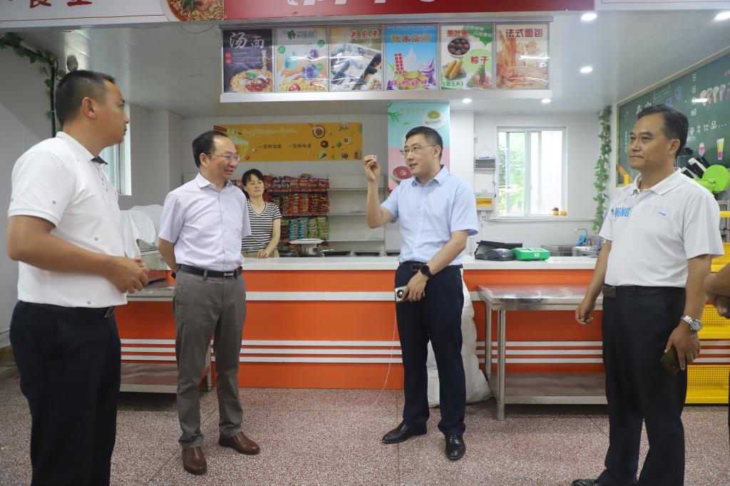 8月27日下午,校长张立驰,副校长王延寿、阳光宁、汪贤才深入教学楼、实验室、学生食堂、学生宿舍检查指导开学准备工作。