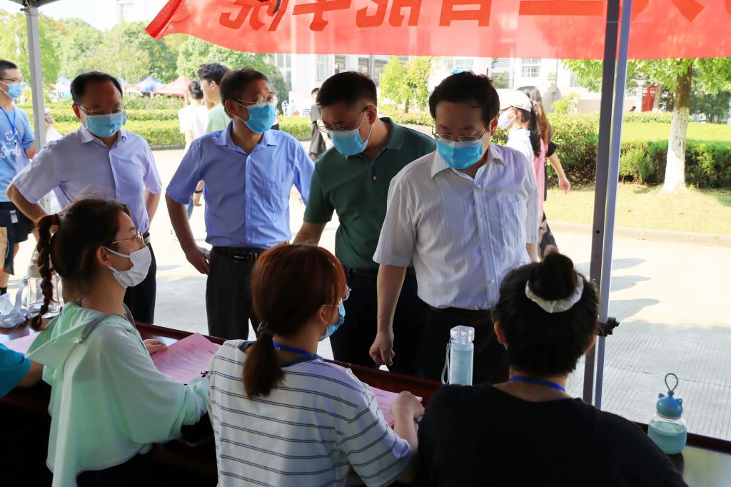 11日上午,校领导孙晓峰、张立驰、崔国发、王延寿、汪海、汪贤才前往迎新报到处、家长休息区、核酸检测点等看望慰问迎新工作人员,了解新生报到情况,与学生家长和学生亲切交谈,勉励学生做有理想、有本领、有担当的新时代青年。