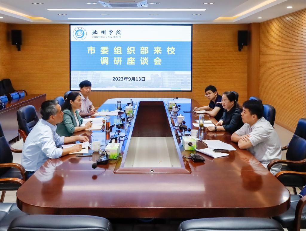 9月13日,市委组织部副部长徐洁芳一行来best365官网调研,商谈市校联合高层次人才引进相关配套政策等工作。市委编办四级调研员事业科科长高志俊、市委组织部人才服务科副科长刘洋参加座谈会。党委副书记、院长郑兰荣出席座谈会。
