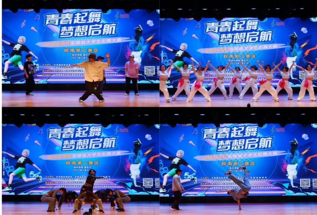 5月31日下午,“青春起舞,梦想起航”——“动感地带杯”安徽省大学生街舞大赛(皖南第二赛区)在学校音乐厅成功举办。团省委学校部郭振宇、共青团池州市委副书记郑彪、校团委负责人以及400余名师生共同观看了演出。