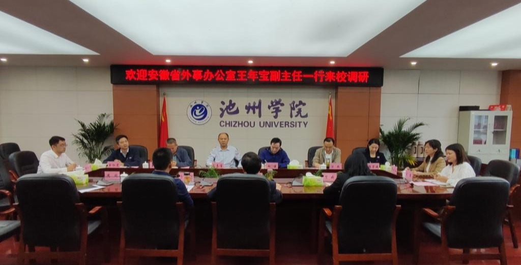 5月6日上午,省外办党组成员、副主任王年宝,省外办二级巡视员胡健,省外办二级调研员(主持工作)王浩等一行到best365官网调研外事工作,院党委书记孙晓峰热情接待并主持座谈会。池州市政府副秘书长、市政府办(市政府外办)主任汪政,市政府办(市政府外办)二级调研员程芳媛参加调研。