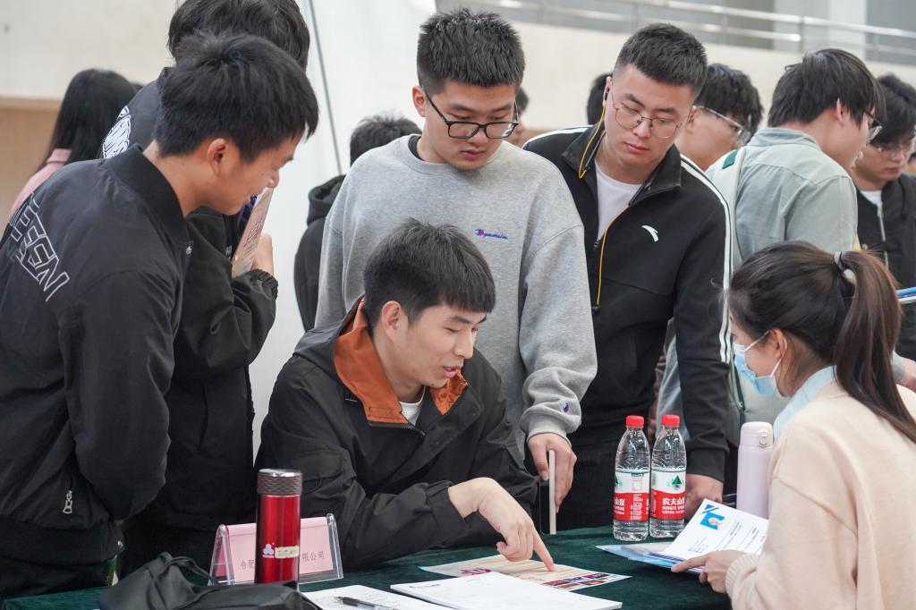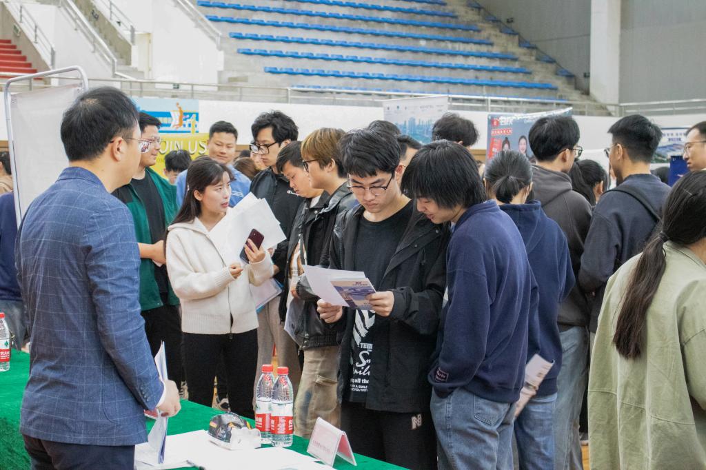 招聘会上,单位负责人向求职学生细致介绍公司情况、招聘需求、薪资待遇和发展空间等,热情邀请毕业生加入。同学们积极了解招聘单位情况,表达求职意愿,开展择业活动。招聘会现场还设置了“征兵咨询台”,退役复学“老兵”在现场与同学进行交流分享,介绍大学生征兵入伍政策等。