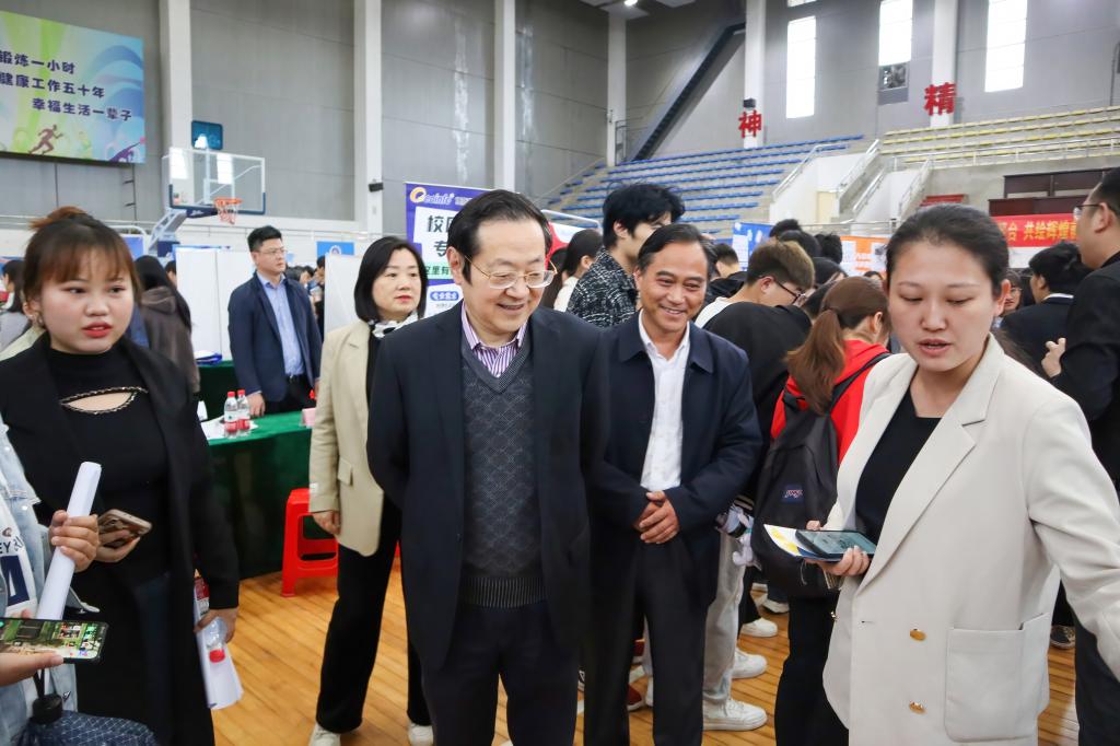孙晓峰深入招聘会现场,与参会单位代表和毕业生进行交流,了解企业发展与人才需求、毕业生求职择业进展等情况,向用人单位介绍学校的教育教学情况和人才培养特色,并就深化校企双向合作,积极拓展就业岗位,开展校园人才招聘,促进毕业生充分就业等进行了沟通交流。勉励毕业生积极面对就业挑战,充分展示专业才干,昂扬自信走向社会,实现美好人生梦想。