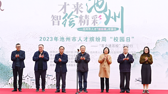 3月31日,池州市2023年人才缤纷周“百企进百校”人才专场招聘会在best365官网图书馆前广场举行。院党委委员、副院长阳光宁出席并致辞,市人社局党组书记、局长林芳等参加了招聘活动。