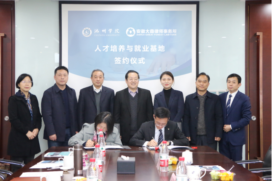 调研中,学校与安徽大森律师事务所签署了人才培养与就业基地合作协议,孙晓峰为基地授牌。