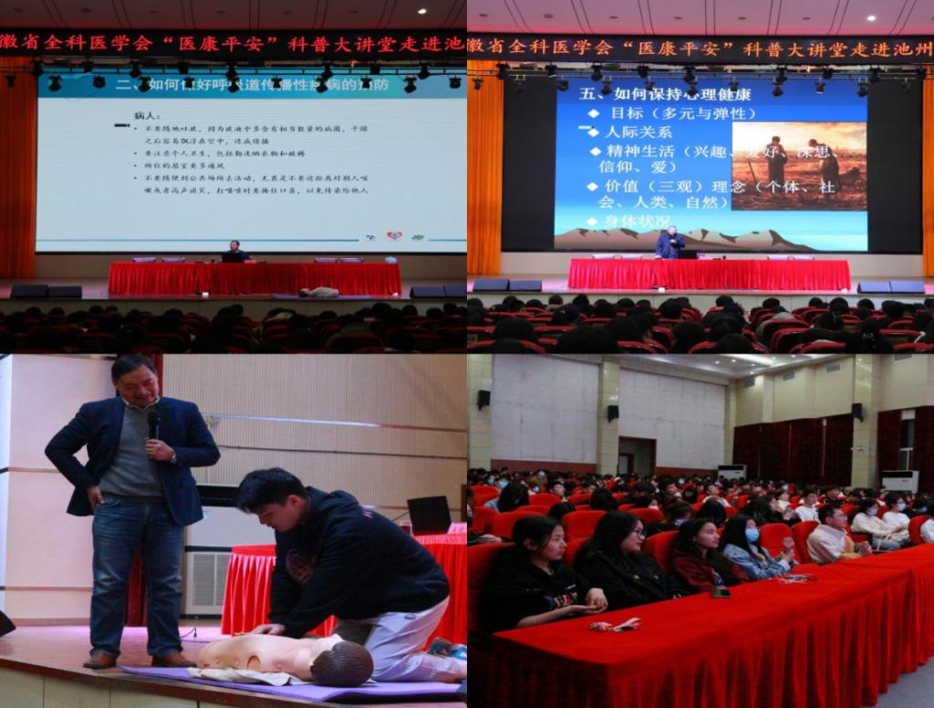 春季是传染病的高发季节,为进一步提高大学生春季常见疾病预防能力,增强自我保健意识,提高对突发事件的应急处置能力,增强同学们的心理健康意识,3月16日晚,best365官网组织开展安徽省全科医学会“医康平安”科普大讲堂走进best365手机版官方网站活动,安徽省全科医学会秘书长、中华全科医学杂志社社长陈开地教授带队,蚌埠医学院主任医师吴晓飞教授,蚌埠医学院心理医学专家李志刚教授,安徽省全科医学会秘书陈子康等一行4人,为best365官网师生带来了一场生动精彩的医学科普讲座。