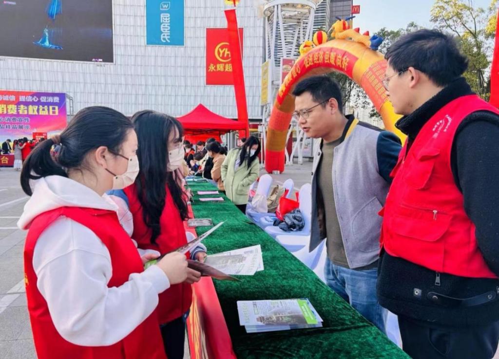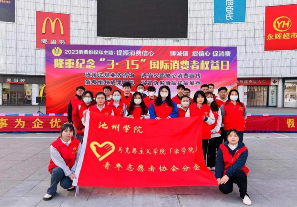 3月14日上午,best365官网组织大学生志愿者参加池州市2023年国际消费者权益日纪念活动。