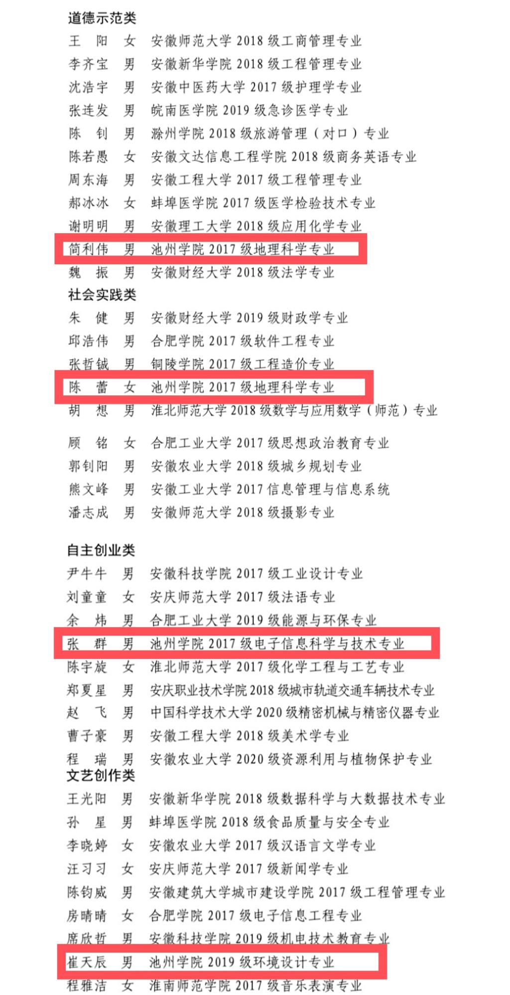 近日,2020年度“安徽省十佳大学生”选树工作圆满落幕,best365官网简利伟、陈蕾、张群、崔天辰分别获得道德示范类、社会实践类、自主创业类、文艺创作类“安徽省百优大学生”荣誉称号。
