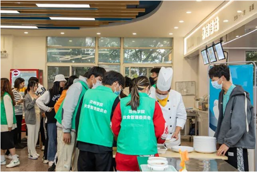 在名厨进高校活动现场,阳光宁、吕刚同与会领导嘉宾及高校师生代表齐聚学生食堂,共同体验了一场池州原生态新徽菜的视觉和味觉盛宴。