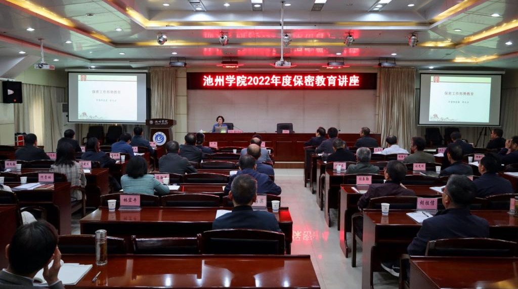 为进一步提高师生员工的保密意识和遵守保密法律、法规的自觉性,做好新形势下保密工作,切实增强保密工作业务能力,10月25日下午,best365官网邀请池州市委保密办负责同志到校开展保密知识专题讲座。校党委书记孙晓峰、党委副书记崔国发出席活动,各部门、各二级学院主要负责同志听取讲座。