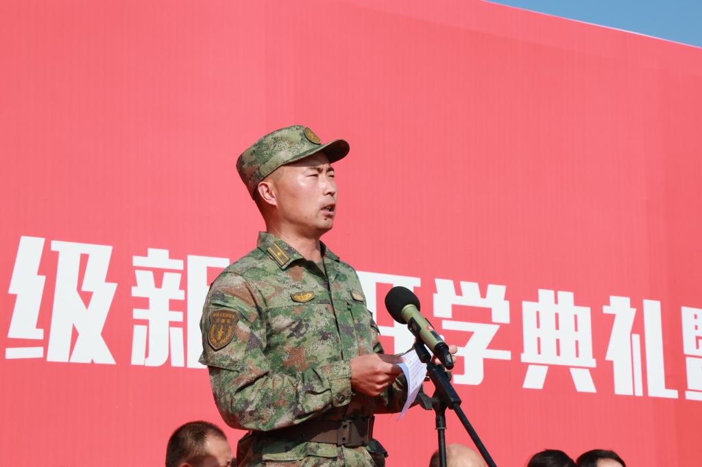 2022级新生军训带队领导少校副营长刘克发言。