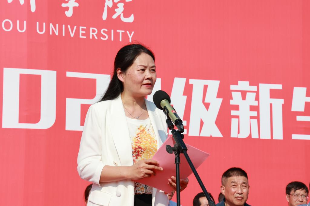 党委副书记、院长郑兰荣代表学校全体师生向2022级新同学表示最热烈的欢迎,向辛勤培育学生成长的学生父母、老师和亲友致以崇高的敬意,向大力支持学校军训工作的承训部队领导及全体教官表示衷心的感谢。