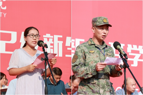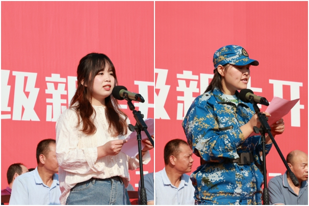 老生代表文学与传媒学院凌馨悦同学和新生代表材料与环境工程学院李媛媛同学分别发言。