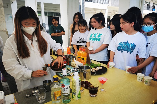 在活动现场,同学们通过班级对抗、小组比拼等方式,将鸡尾酒调制、咖啡冲泡、托盘端托、中式铺床等专业劳动技能展示比拼。活动内容丰富、形式活泼,气氛热烈。