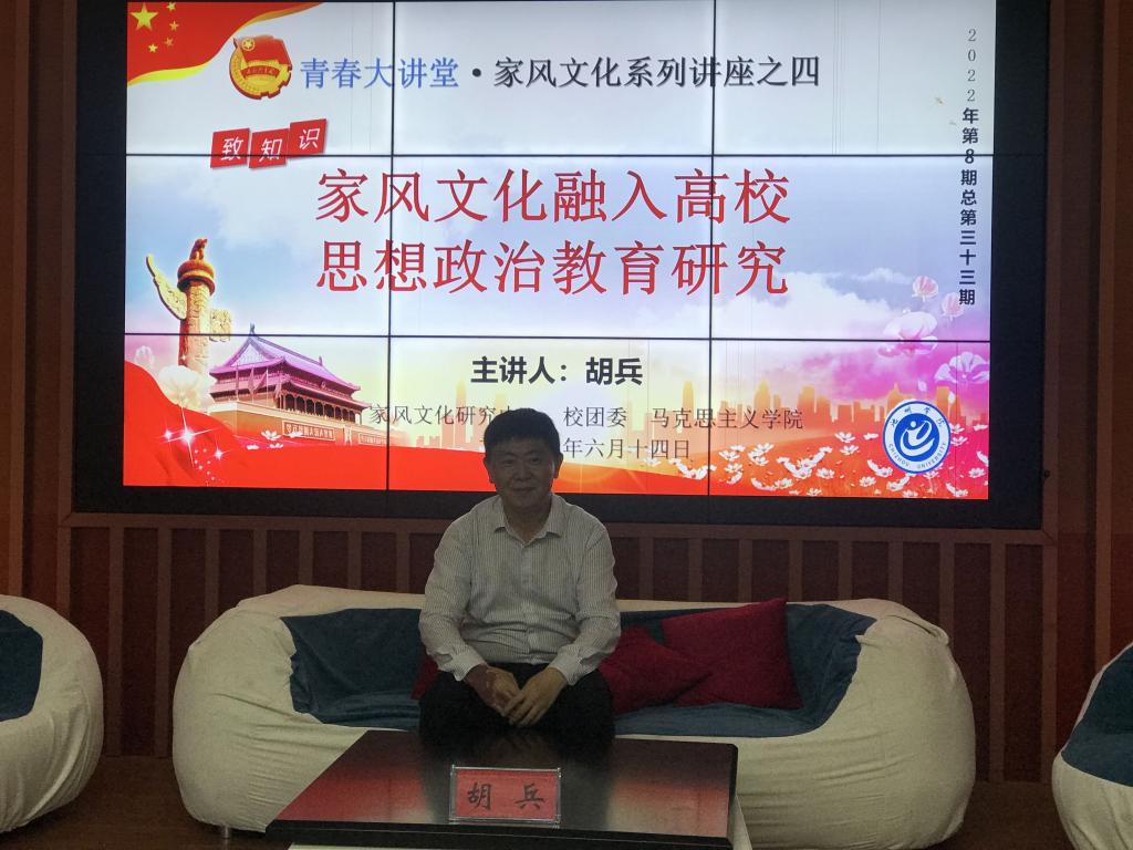 6月14日晚,best365手机版官方网站大学生成长沙龙“青春大讲堂·家风文化系列讲座之四”在大学生活动中心举行。院党委委员、组织部长胡兵以“家风文化融入高校思想政治教育研究”为主题,讲述好家风、好家庭、好家教事例,阐释家风文化融入高校思想政治教育的重要意义和实施路径。