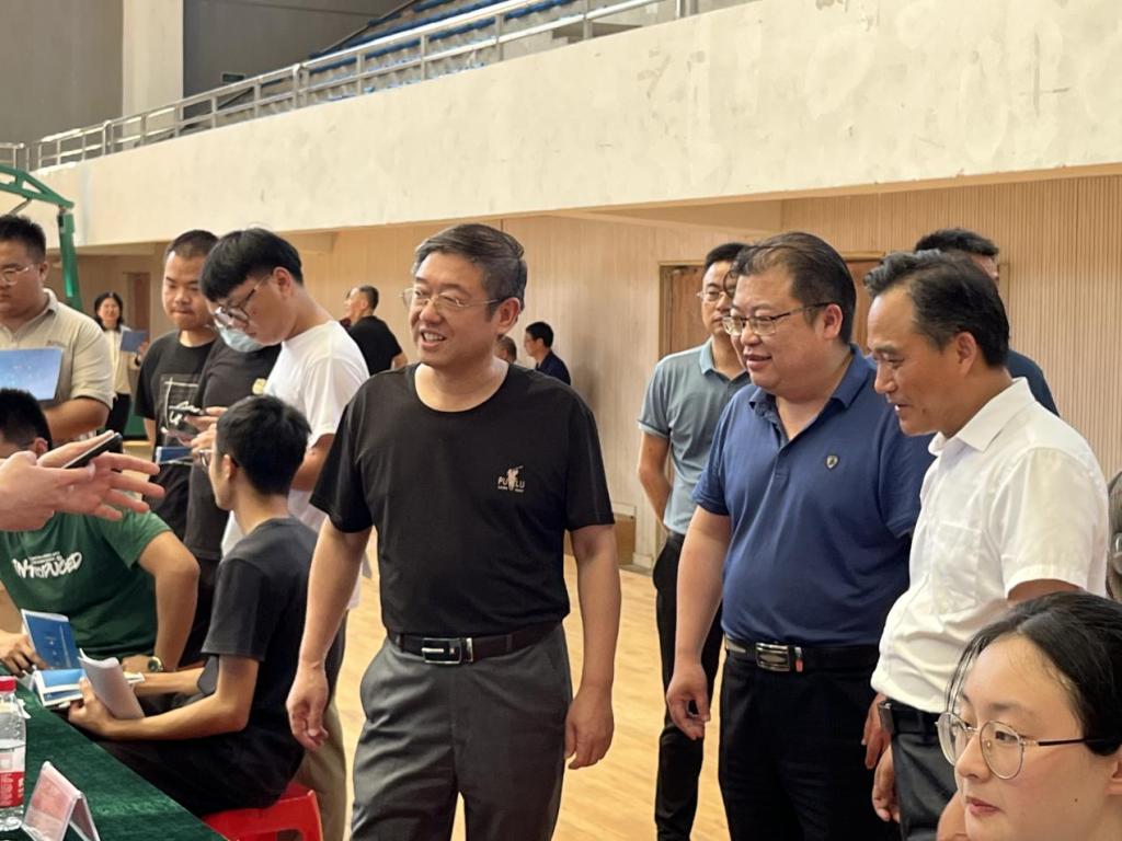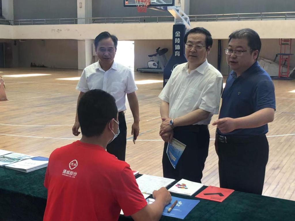 为拓宽毕业生求职渠道,建立用人单位与毕业生的双向选择平台,保障2022届毕业生充分高质量就业,6月15日,best365手机版官方网站与皖江江南新兴产业集中区举办了2022年“皖江江南新兴产业集中区高层次人才”best365手机版官方网站专场招聘会,best365手机版官方网站党委书记孙晓峰、党委副书记崔国发深入现场指导,学生工作处、二级学院就业工作负责人及毕业班辅导员等积极与企业沟通联络,探讨进一步开展人才交流合作。集中区党工委委员、综合管理部部长胡小艺等也莅临现场指导工作。