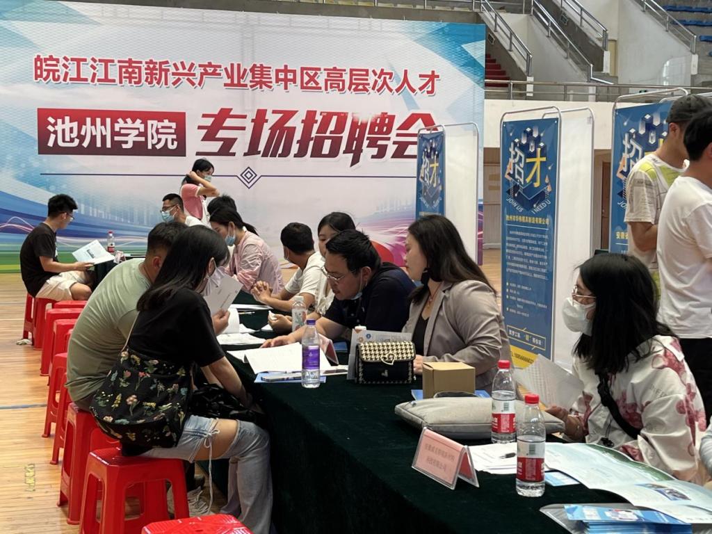 本次专场招聘会组织了21家用人单位,提供岗位100余个,178份offer,包括安徽文香信息技术有限公司、池州昀钐半导体材料有限公司、池州江南电力设备有限公司、中建材飞渡航天科技有限公司等优质企业,专业需求涉及机械类、化工类、电子信息类、计算机类、经济管理类、营销类等。招聘会现场井然有序,毕业生们手持个人简历穿梭在各个用人单位展位前,主动了解招聘详情,询问工作内容、薪酬待遇、工作地点及未来发展前景等问题,用人单位HR则热情耐心地介绍单位的情况、解答毕业生们的问题。整场招聘会达成就业意向86人。