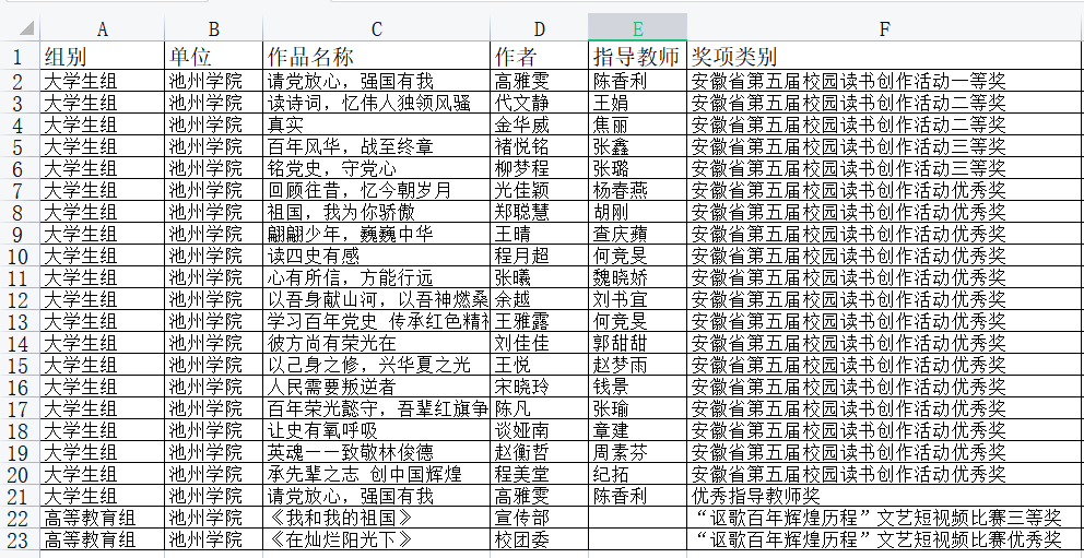 近日,安徽省第五届校园读书创作活动获奖名单公布,best365官网累计获奖22项。其中,一等奖1项、二等奖2项、三等奖和优秀奖18项,优秀指导老师奖1项。